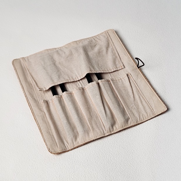筆箱をモダンな形に変えた一品です。畳むとコンパクトに収納もでき、中は一つ一つが仕切られたデザインになので、一目で必要なものがわかります。ペンシルポーチという名ですが、メイク道具のブラシなどの収納にも使用できます。